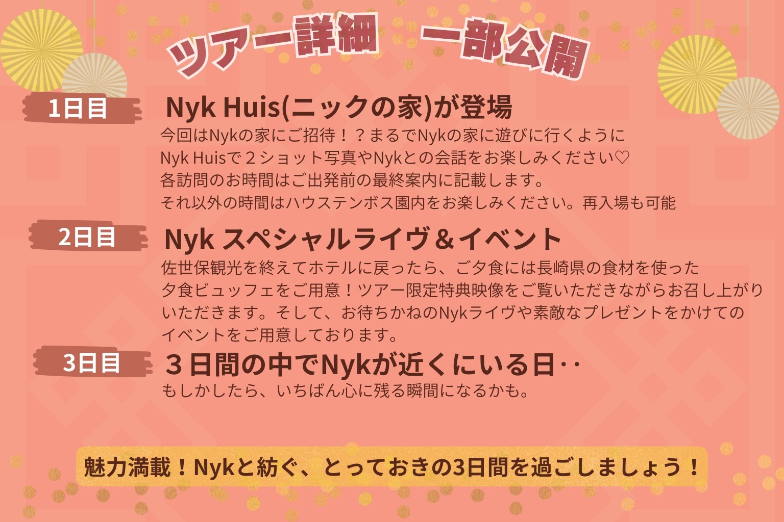 Fanclub 夢中×無敵 ファンクラブツアーin九州二次募集 2026 年 3 月 1 日 夢中×無敵 ファンクラブツアーin九州二次募集 Nicholas Edwards「ボクのルーツ、あなたと紡ぐ旅」in 九州 下記よりお申込みください。 https//www.toptravel.co.jp/nicholas-edwards-tour/nicholas-edwards-tour2
